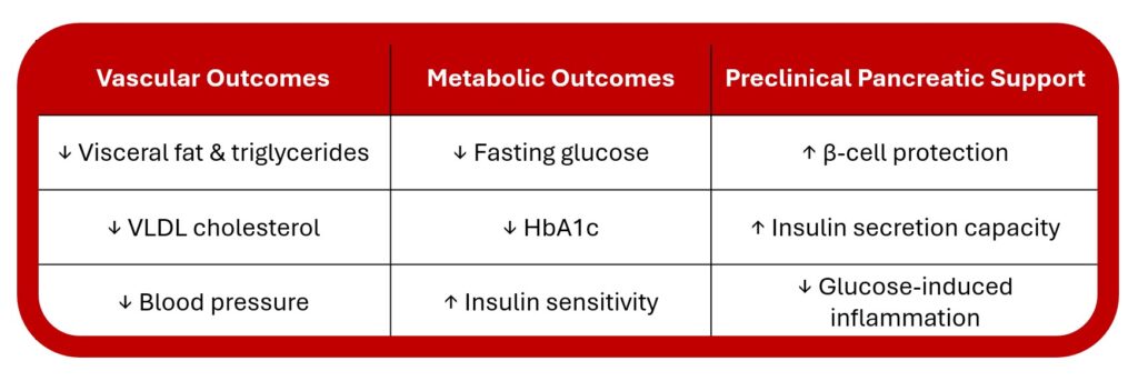 Cardiometabolic health sits at a red-light intersection, where blood sugar control, lipid balance, and vascular function all converge. Astaxanthin has been studied across each of these domains, showing potential to support patients at risk of metabolic syndrome and type 2 diabetes.