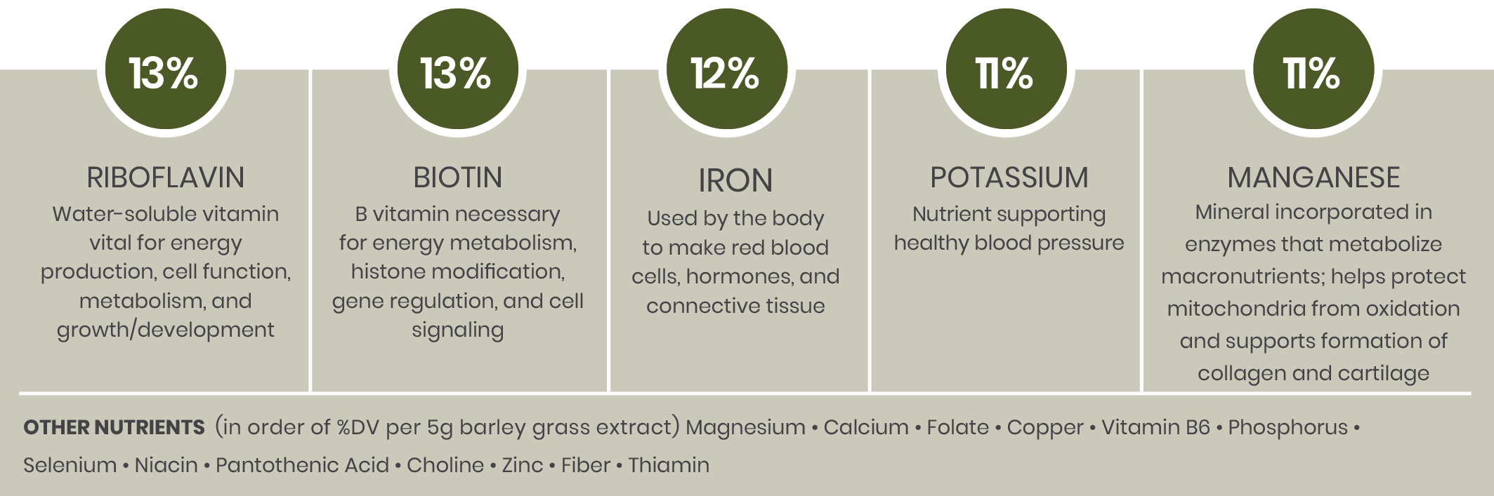 Percentages shown as %DV per serving of 5g barley grass extract.