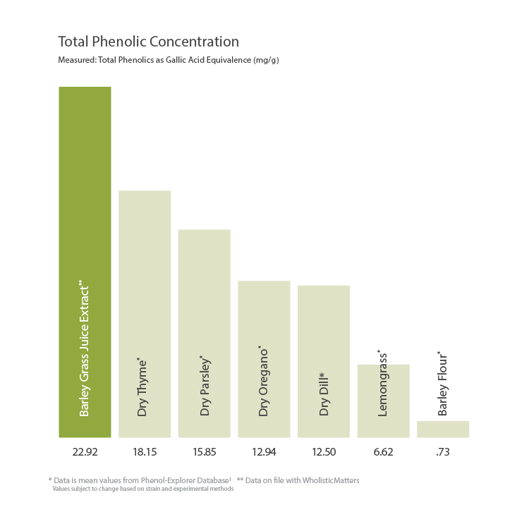 Measured: Total Phenolics as Gallic Acid Equivalence (mg/g).
