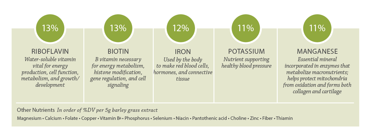 Percentages shown as %DV per serving of 5g barley grass extract.