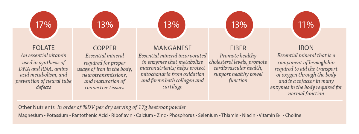 Percentages shown as %DV per dry serving of 17g beetroot powder.