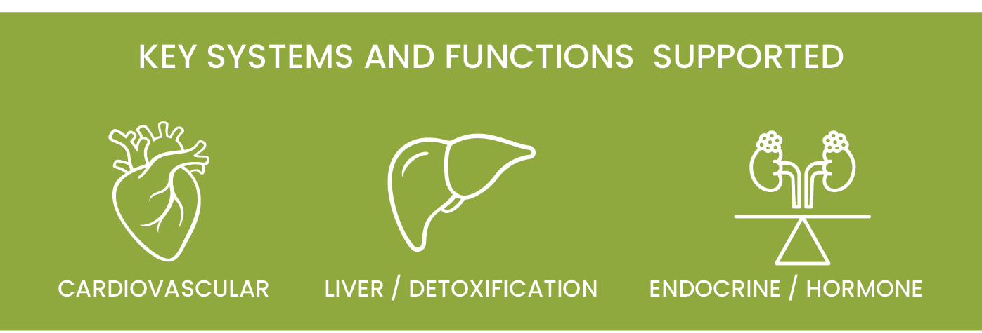 Contain flavonoids and phenolic compounds that enhance liver detox enzyme activity, support endocrine balance, and promote healthy digestion through antioxidant and anti-inflammatory effects.