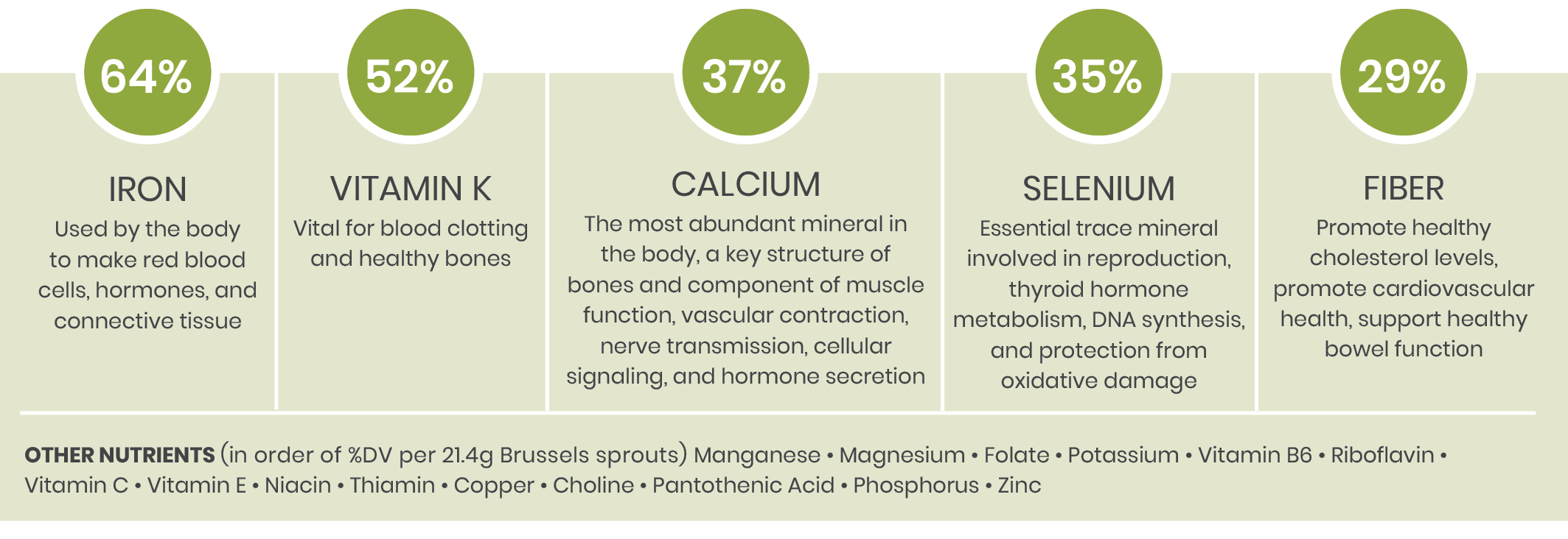 Percentages shown as %DV per freeze dried serving of 21.4g Brussels (equal to 1 cup fresh chopped)