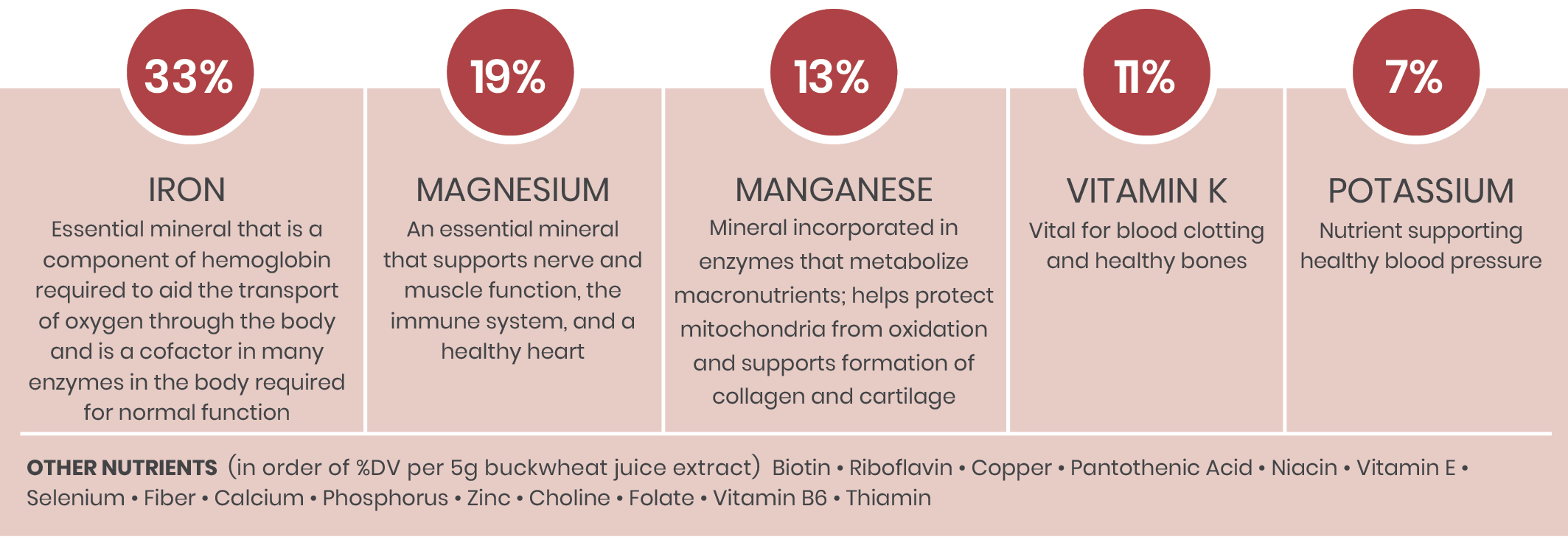 Percentages shown as %DV per serving of 5g buckwheat juice extract.