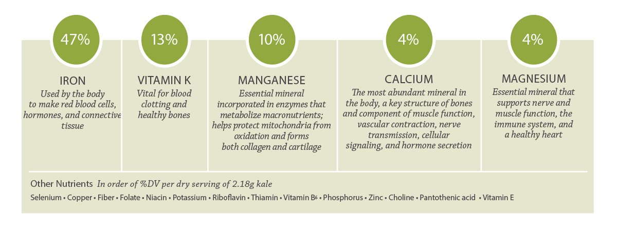 Percentages shown as %DV per dry serving of 2.18g kale.
