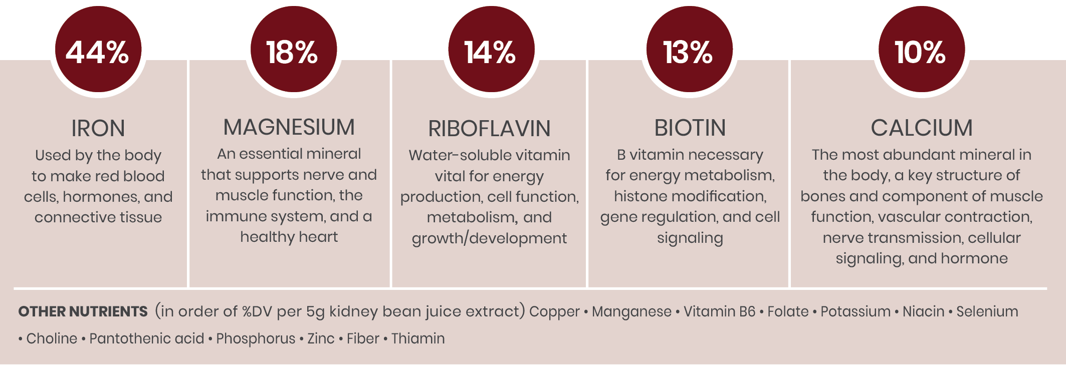 Percentages shown as %DV per serving of 5g kidney bean juice extract.