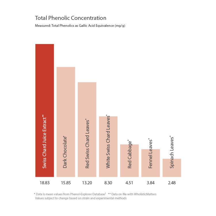 Percentages shown as %DV per serving of 5g dry Swiss chard extract.