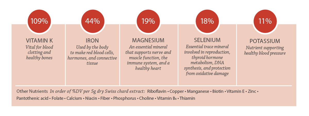 Percentages shown as %DV per serving of 5g dry Swiss chard extract.